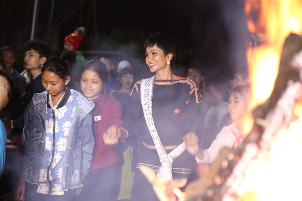 Khi màn đêm buông xuống, du khách có thể đốt lửa trại trước cửa ngôi nhà dài để cùng hòa vang điệu múa xoang của dân làng với các chàng trai cô gái trong điệu xoang mang đậm bản sắc dân tộc.